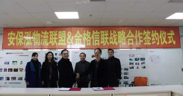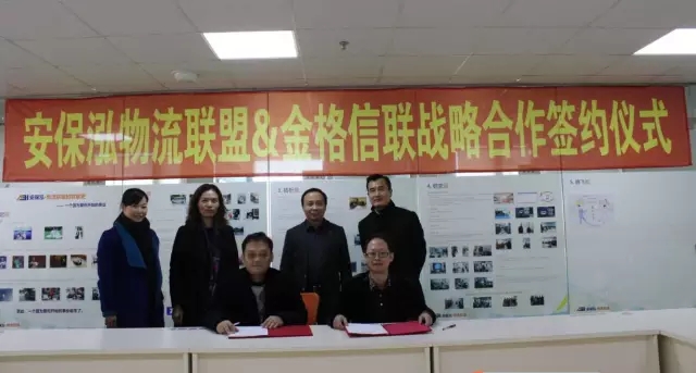 2015年11月27日上午,江西金格信联网络有限公司总经理姜林海先生、金格科技股份有限公司董事长刘永军及随行人员,在上海松江区与安保泓物流联盟举行战略合作伙伴签约仪式。携手将eID重点应用---安保泓物流联盟系统平台在江西推广落地!